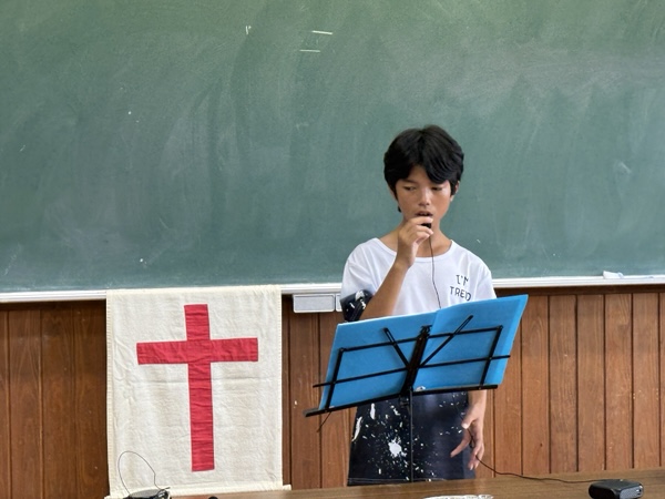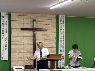 湯前音楽交流会ご湯前教会 主日礼拝がなされています。