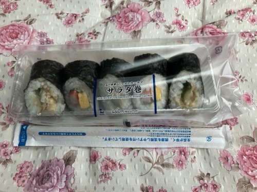 急だったし、朝ごはん用意するだけで精一杯でお弁当作る時間なく………コンビニ🏪で「サラダ巻き」を買ったそうです………が、「おかず、何か買えば良かったのに😔」と言うと「これでいいんだ。」と。