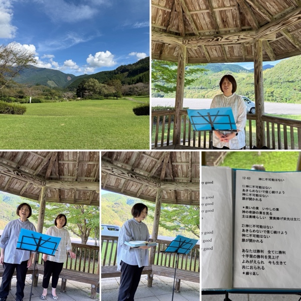 湯前駅の公園で礼拝しました。