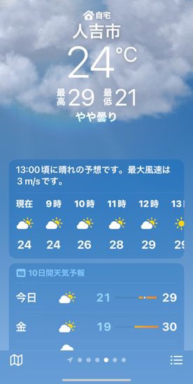 人吉市は晴れです。