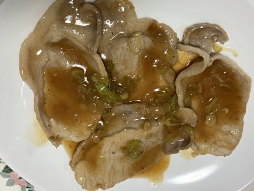 *豚の生姜焼き🫚………豚ロース肉半額で、213円也🤭🎶(半分使って)