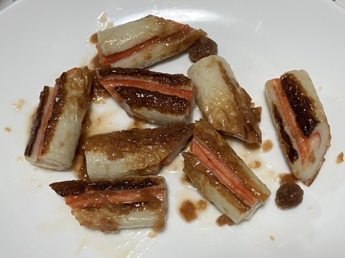 *ちくわにカニカマを詰めて………梅干しと蜂蜜🍯でお味付け✌️🤗