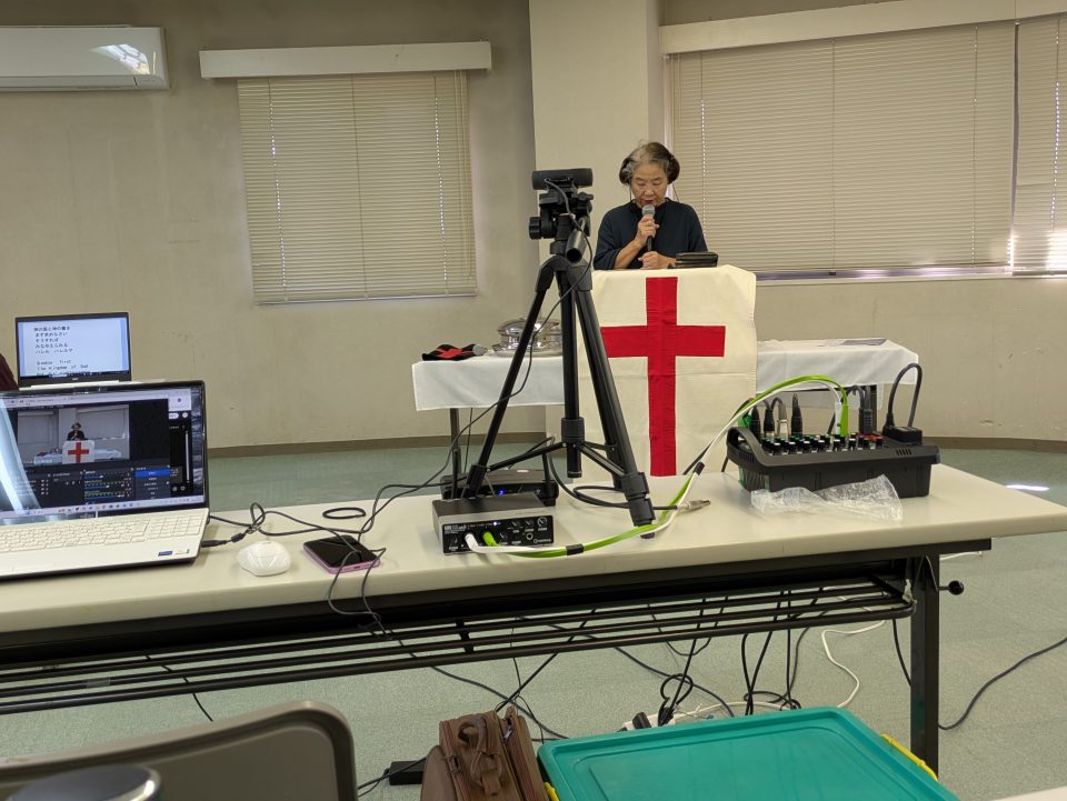 雨が上がり、良い天気になりました。今日は、広島との合同礼拝です。広島・呉サラ