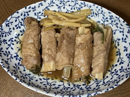 *セロリの豚肉巻き(葉っぱ🌿も)………ポン酢と蜂蜜🍯でお味付け