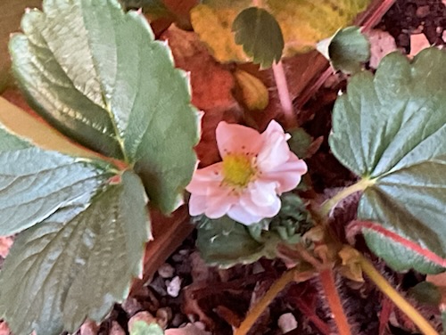 いちご🍓ちゃんの花が、ひとつ咲きましたぁ🤭