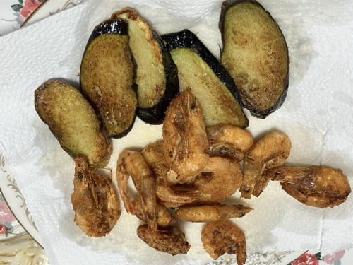 *小エビ🍤が少し、冷凍庫に(唐揚げに、イスラエルさんが半分残っていたナス🍆も一緒に)