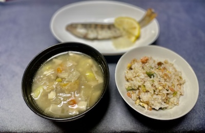 奥のボヤけてるのは😂魚の塩焼きです🐟