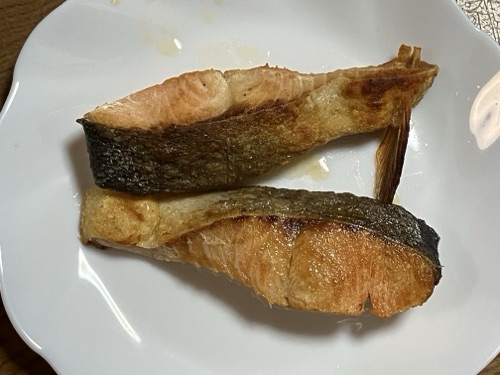 *贈り物の塩鮭を焼いただけ❣️