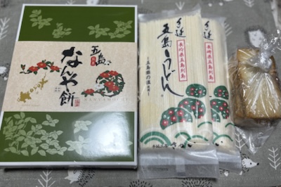 五島銘菓なんや餅、五島うどん、五島名物のかまぼこ😍