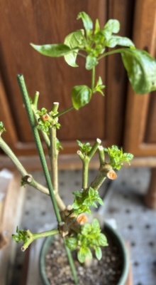 寒い冬を乗り越えるために畑からプランターに植え替えて室内に置いています。