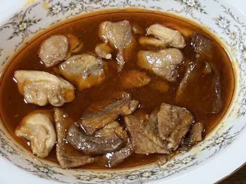 豚肉はお味付き………焼いて、焼き肉のたれ、みりん、蜂蜜🍯で煮込みました。