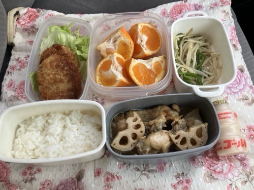 今日は、起きた時ふらふらで足はガクガク、しばらく動けなくて、「神さま。助けて下さい。お弁当作る力を与えて下さい。」と心の中で叫んで………ギリギリ間に合って、感謝でした。✌️🎶