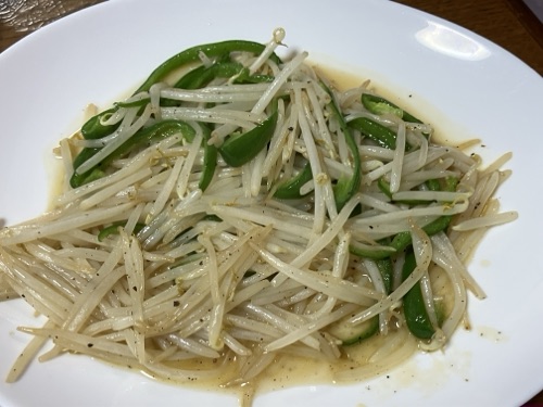 *もやし、ピーマン🫑を鶏ガラスープの素、みりん、ブラックペッパーで🥰
