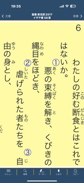 聖書箇所はイザヤ書58章6節〜7節です。