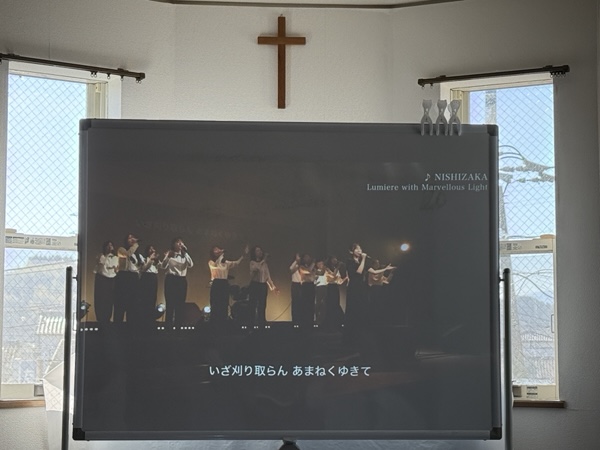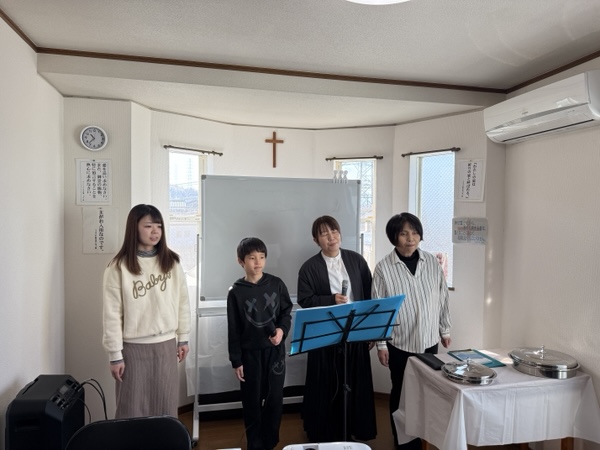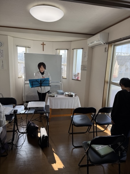 メッセージの時です。三木さんが、コリント人への手紙第二12章5節「このような人のことを私は誇ります。しかし、私自身については、弱さ以外は誇りません。」から語ってくださっています。自分にゆるされた弱さ、棘を学びます。 広島・呉サラ