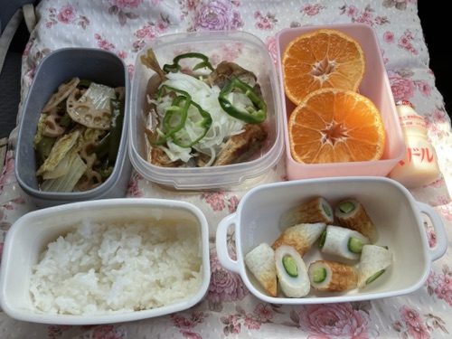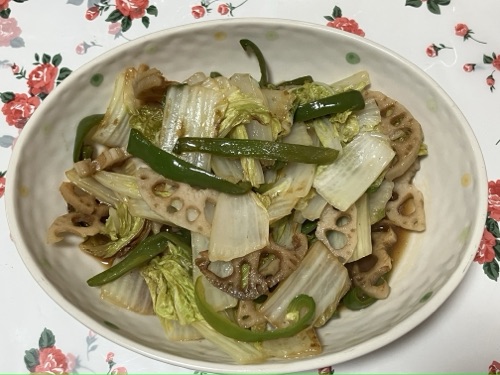 *野菜炒め(白菜、レンコン、ピーマン🫑………ドレッシング、みりん、鶏ガラスープの素でお味付け✌️🤗)
