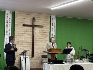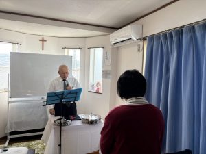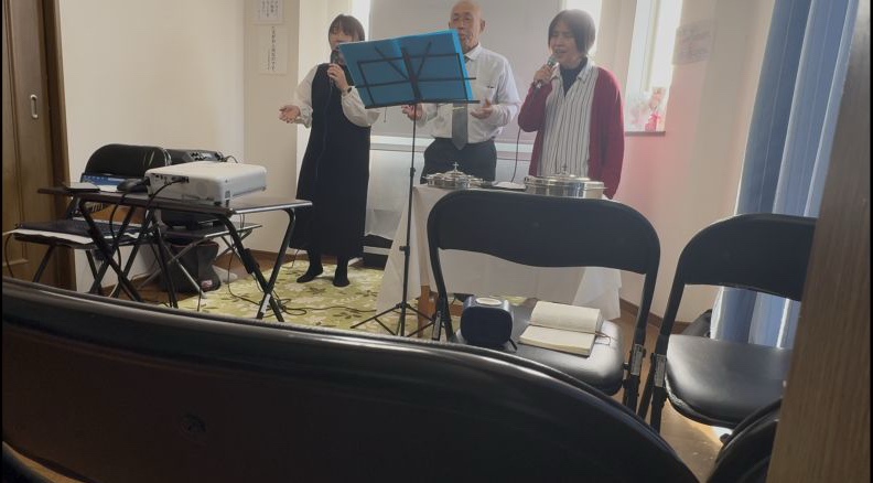 牧師賛美、メッセージの時です。今日は、新しい方が加わっておられます。ハレルヤ!広島・呉サラ