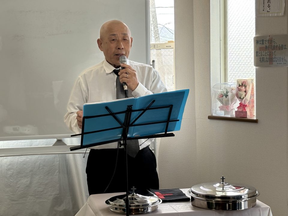 今日も、Sさんが準備のご奉仕と後半賛美の奏楽のご奉仕に来て下さいました。途中帰って、第二礼拝に来られます。