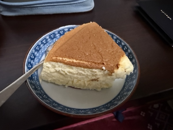 チーズケーキを食べて、休憩中です。