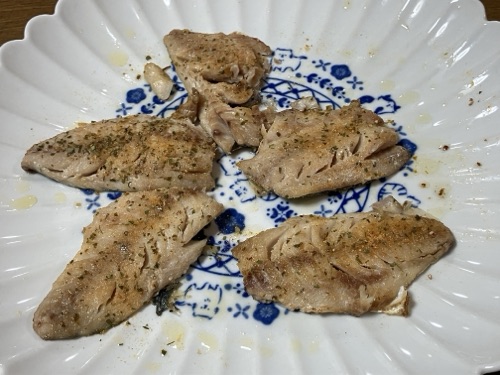 お刺身の残りのハマチ、鯵を3枚におろして………魚の香草焼きのシーズニングを見つけたので………でも、しっかりまぶして、少し時間をおかないといけなかったのに時間がなくて、振りかけて焼いただけに🥹お味が、薄かったので、上からまた振りかけて✌️🤗