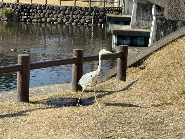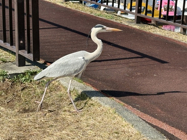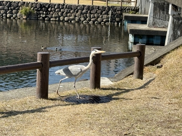 熊本市に行ったときに、江津湖公園で歩いていたら、目の前をシラサギ?(名前間違えていたらごめんなさい🙇‍♀️)