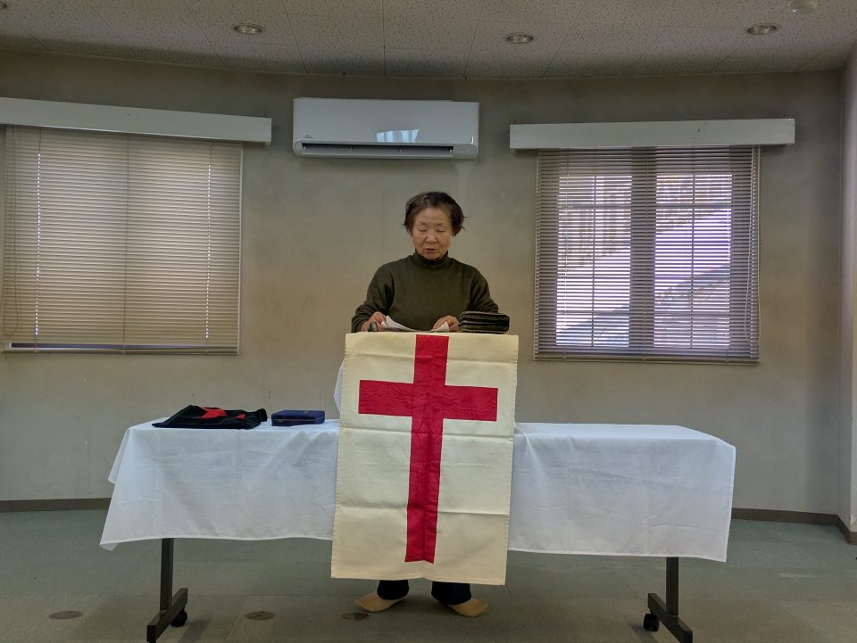 暖かい日です。良い天気です。呉で木曜礼拝が捧げられています。初めての方が集われています。広島・呉サラ