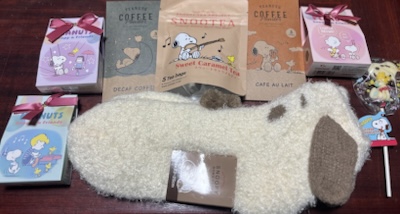 殉教聖会で再会した大切な信仰の友☺︎☺︎から感激のスヌーピーのチョコレート、コーヒー、キャラメルティー、ルームソックスをいただきました🎁