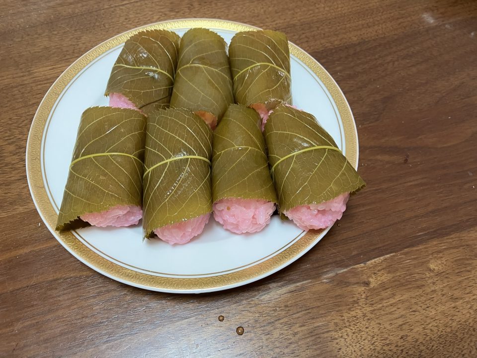満開まではあと一歩、桜餅を作って食べています.日本の春を満喫