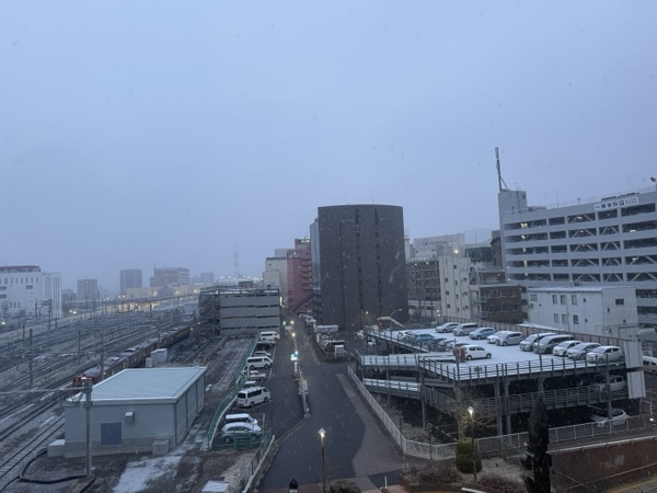 雪が降り始めているのが見えています。