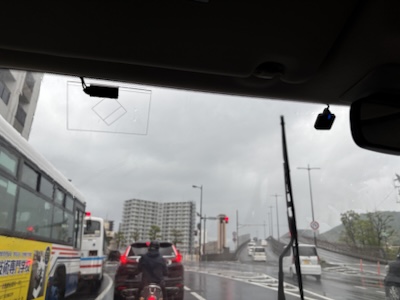 土砂降りの雨の中、路上ライブへ♫🚙😃